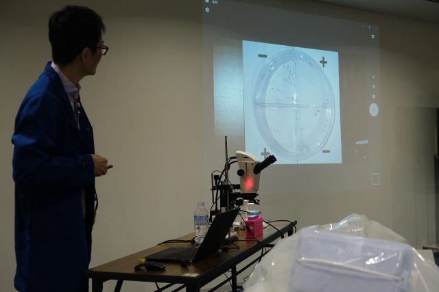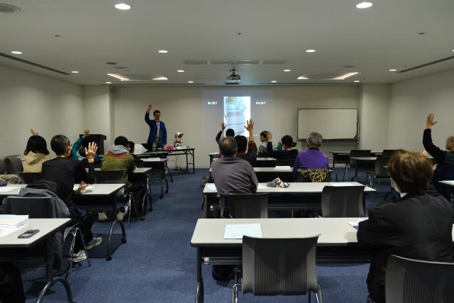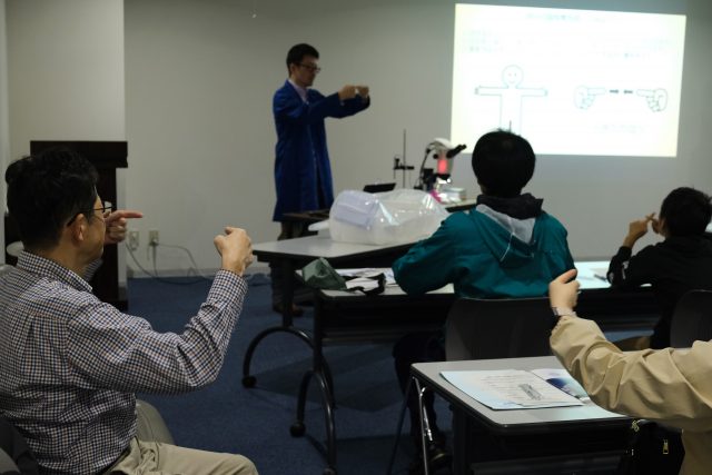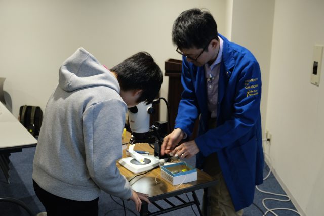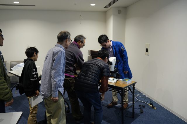 講演終了後に、希望者は顕微鏡での観察や質問タイム