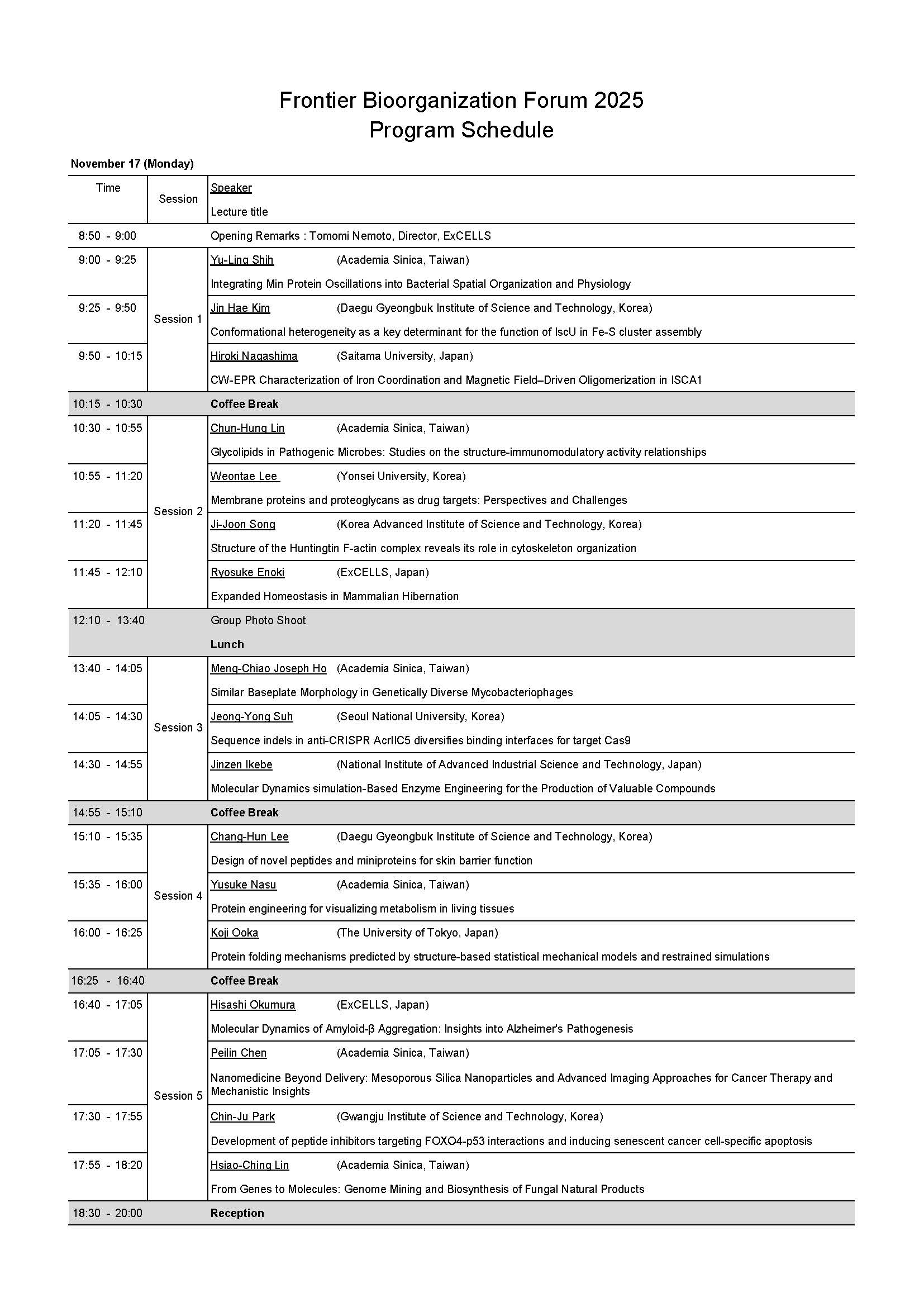 2025年11月17日(月)〜18日(火)に、Frontier Bioorganization Forum 2025を
